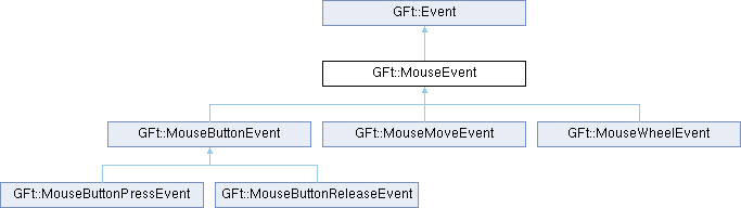 类 GFt::MouseEvent 继承关系图:Public 成员函数 | |
