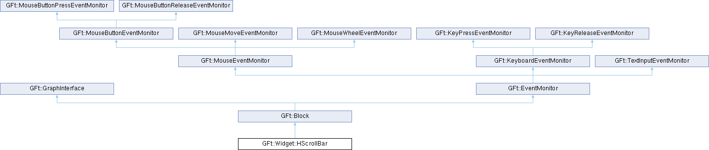 类 GFt::Widget::HScrollBar 继承关系图:Public 成员函数 | |